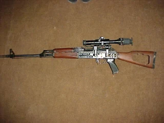 البندقية المستخدمة اسمها الدارج في العراق تبوك وهي تعديل لبندقية دراجونوف الروسية الصنع من طراز 7.62*35 مللي والفيديو التالي يشرح البندقية