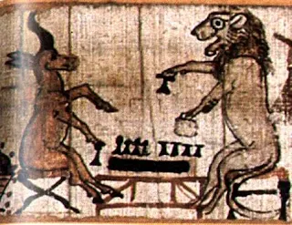 عندما تنقلب الأحوال أكثر وأكثر يتخيل أغبى الناس انه أذكاهم وأفضلهم، ففي هذه الصورة يقف حمار أمام فرقة موسيقية من باقي الحيوانات ليغني ويعزف، وكما هو معروف أن صوت الحمار هو أكثر أصوات الحيوانات كرها، ورغم ذلك يصوره المصري القديم على انه هو المطرب الذي يجب أن يستمع إليه الشعب رغما عنه.