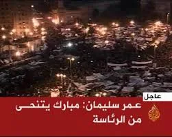 عمر سليمان يعلن تنحي مبارك وتسليم الحكم للمجلس اﻷعلى للقوات المسلحة